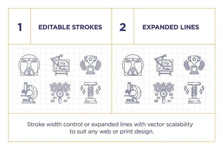 图穷联素材库 » 科学教育全领域主题线稿矢量图标合辑 Education an