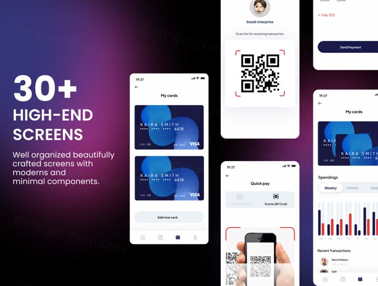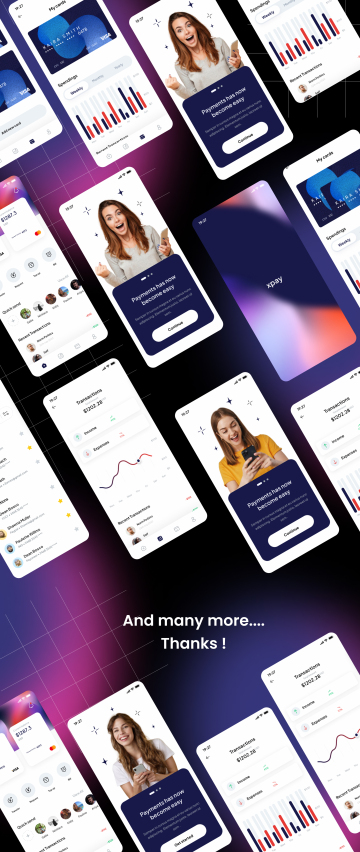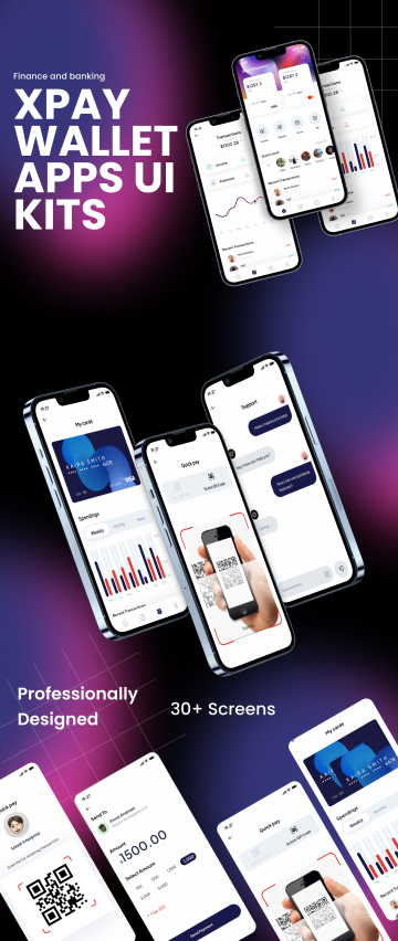 xpay 是一个高级和高质量的钱包应用程序 UI 套件,由 30 多个像素完美的屏幕组成,在 Figma 中易于使用。