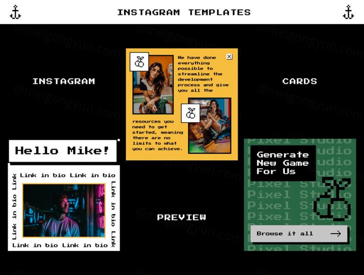 对于那些想要在 Instagram 个人资料中营造怀旧氛围的人。对比色、像素图标和 Press Start 2P 字体营造出特殊的老式游戏氛围。发布精彩照片并在 Instagram 上提及@getcraftwork。