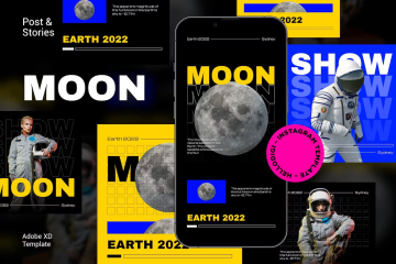 图穷联素材库 » 未来派科技感星球宇宙Ins新媒体广告营销海报XD模板 Moo