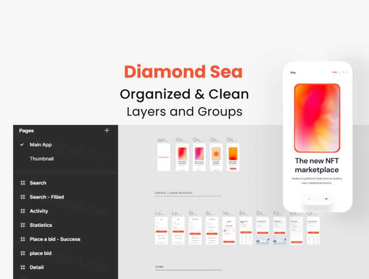 Diamond Sea 是一款优质的 NFT 市场应用程序 UI 套件,具有 40 多个高质量屏幕,易于在 Figma 中使用,采用 Love 和 UX 友好设计。