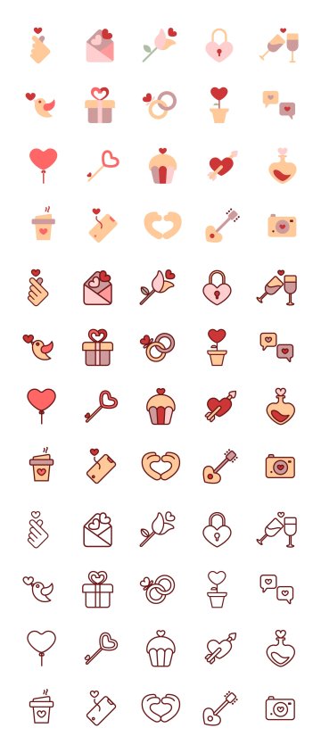 收集总共 60 个具有扁平、线性颜色和轮廓样式的爱情和婚礼图标(每个 20 个图标)。非常适合您的网站、移动应用程序或任何视觉需求。所有图标均以矢量形式制作,易于定制(.png 文件除外)。