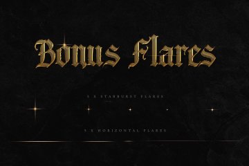 还包括 10 个耀斑(5 个星爆和 5 个水平),为您的字母添加额外的发光和神奇的高镜面高光。这些在具有透明度的单个 .psd 文件中提供。