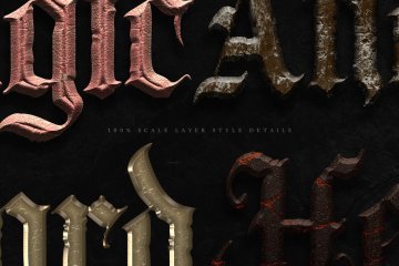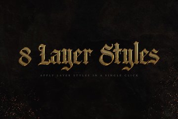 奖金 作为下载的一部分,我已经包含了一些额外的奖金!包括一组 8 种高分辨率图层样式。只需更改提供的 .psd 文件中的文本,然后单击图层样式即可应用它。图层样式包括;陈年金属、暗金、亮金、剑钢、暴君皮、野蛮人肉、龙皮和地狱地板。