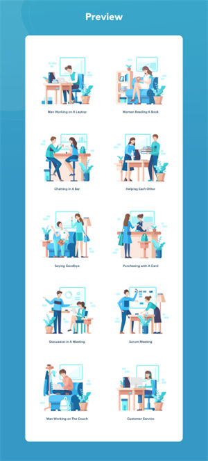 启动插图包包含10个插图,这些插图具有解释工作活动的独特场景。