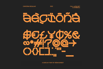 Crateria 是一个大胆且具有未来感的显示面,带有非常圆润的字符,给人一种野兽般的网络感觉。非常适合专辑插图、3D 和基于类型的徽标。