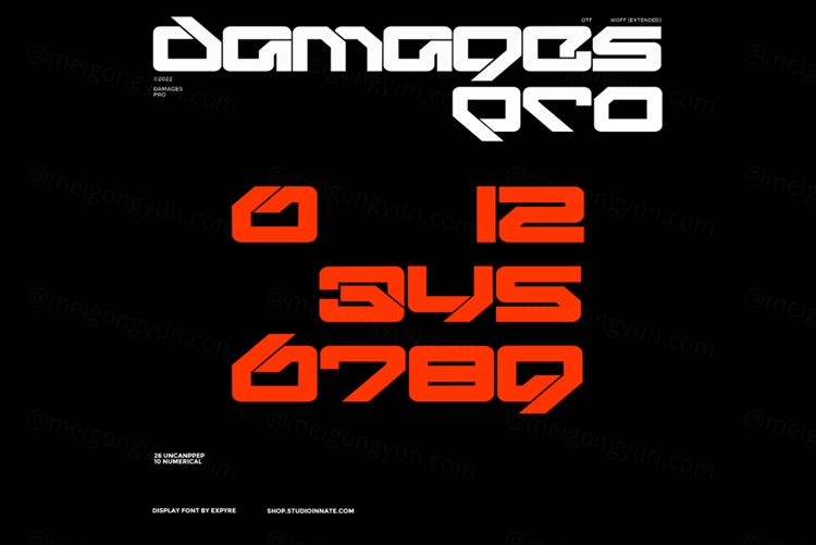 Damages Pro 是一种现代的展示字体,具有坚实的结构和倾斜的剪裁,使其成为运动和街头服饰品牌的绝佳搭配。