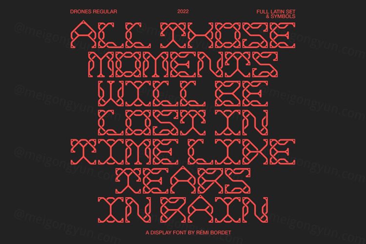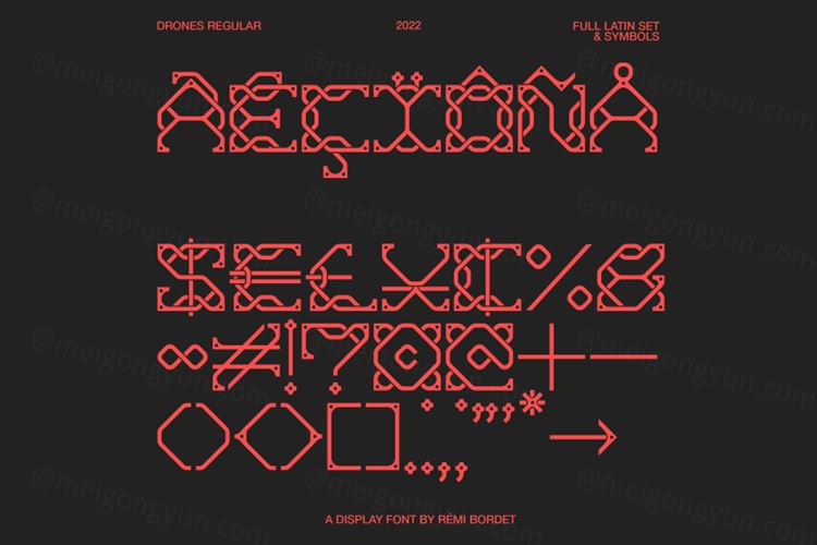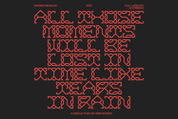 Drones 是一个华丽的展示面,带有互锁的圆形字符,为您的设计带来无可否认的独特外观。非常适合专辑插图、3D 和基于类型的徽标。