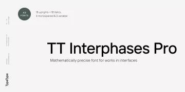 许多人都熟悉 TT Interphases:方便且现代,它是专门为在界面中工作而创建的。是时候了解流行字体的扩展版本了——TT Interphases Pro,经过改进并且更加相关。我们保留了 TT Interphases 的中立性和主要特征,但新字体与其前身的不同之处在于更大的功能性和美观性。