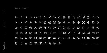 在 TT Interphases Pro 中,设计师将能够同时使用 2 种宽度,已经熟悉的标准宽度和 Condensed,一种可用于制作文本显示的窄版。TT Interphases Pro 有一大组图标,在视觉上与字体中的字符相匹配。TT Interphases Pro 是在现代移动和网络平台的界面中工作的完美字体。