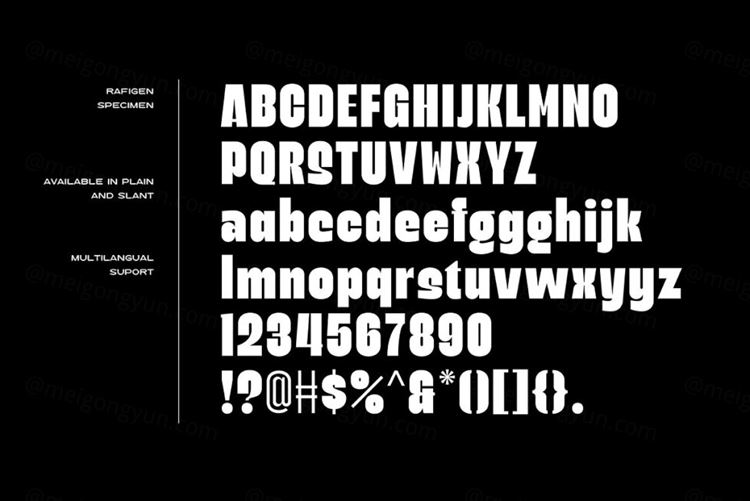 Rafigen 是一种厚实而俏皮的字体。它有两种不同的风格,普通的和倾斜的。
