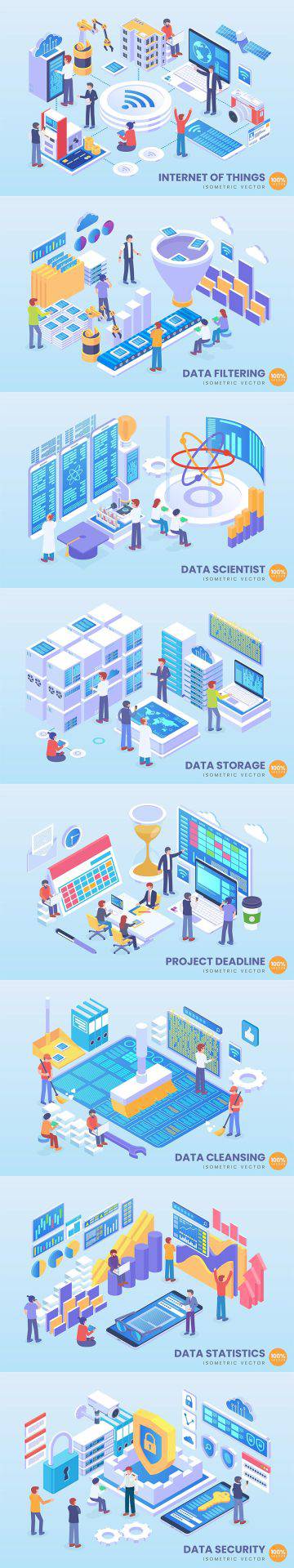 图穷联素材库 » 时尚简约3D立体2.5D等轴等距大数据Technology Isometric