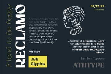Reclamo - 18 San Serif Font 来自 San Serif 系列的简单设计,带有一些对比鲜明的口音。受到 dove 美容产品品牌的启发,我想我可以将简单、干净、优雅的印花融入到 San Serif 家族中。Reclamo 是巴厘岛的广告词。它通过口耳相传,深入人心。