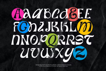 图穷联素材库 » 潮流酸性艺术不对成平衡逆反差英文装饰字体 Eureka Se