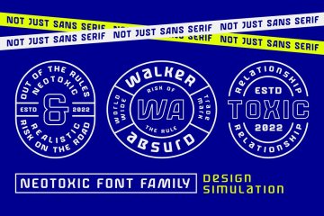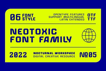 Neotoxic Font Family 于 2022 年发布,可在大字体网站免费下载。该字体支持有趣的功能,如小型大写字母、连字、盐等。还包括 6 种字体样式,包括细、轻、常规、粗体、黑色、轮廓。