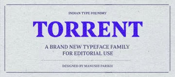 Torrent 系列是一种带有大楔形衬线的多用途字体。它的字母有很大的 x 高度和敞开的对应形式。一些连接也被打开了——例如,在“K”和“k”的直线和对角线之间,以及“R”的垂直中心之间。Torrent 的字体具有更高的笔画对比度模型,这是用于在较长文本段落中使用的衬线字体的典型模型。确实,Torrent 是一种可读性很强的文本字体,即使在不太理想的打印环境(更便宜的纸张和墨水、高速印刷机等)中使用时也能清晰显示。在较小的尺寸中,Torrent 的楔形衬线不会丢失任何细节。事实上,这种楔形是当代衬线字体设计的标志。