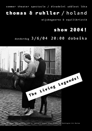 他们的橡胶身体,令人震惊的动作创作(高领毛衣卷得很高)和精心梳理的头发肯定会重新定义您对艺术本质的看法。Thomas & Ruhler - 阴阳,来自郁金香之乡的两个悲伤的小丑,品味的杂耍者和未来的艺术家,高低之分不存在。荷兰艺术。纯粹的喜悦。