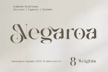 Negaroa 带有美学风格,衬线型标语现代而优雅。这种字体有八个厚度级别,从薄到黑色,以满足您的需求。Negaroa 还配备了最新的专业特征,可以为您的公司或项目呈现优雅和有吸引力的身份用于商业目的。它与描绘的现代衬线和脚本相得益彰,或作为标题和品牌代表坚定地展现优雅的外观。
