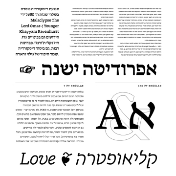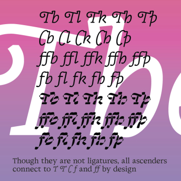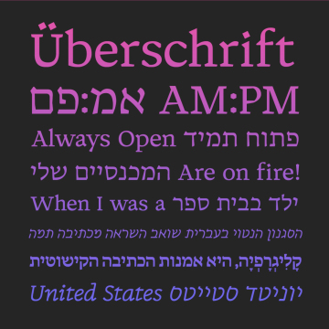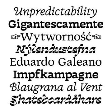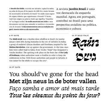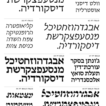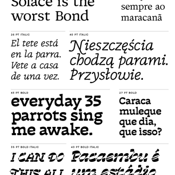Discordia是对比鲜明的类型系列。这个家庭的四个成员中的每一个都有不同的对比类型。Regular有宽笔尖对比度,Bold有水平对比度,Italic是单线,这意味着它没有明显的对比度,而Bold Italic是......嗯,最好自己看看。