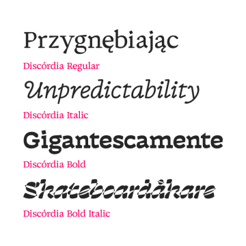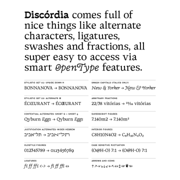 Discordia由Alvaro Franca设计,最初是在巴塞罗那 EINA的Advanced Typography MA 项目中学习的