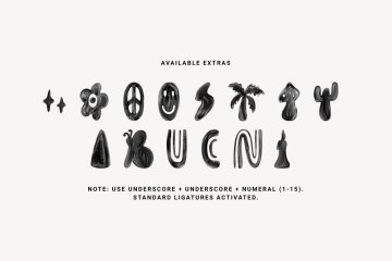 呈现这种新的svg字体。Funky Yard是一种具有3种样式的常规显示字体,分别是:Svg、Brush和Solid。字体文件中有一个额外的手绘图,可以进一步改变您的设计。非常适合商品设计、海报、品牌、封面等。