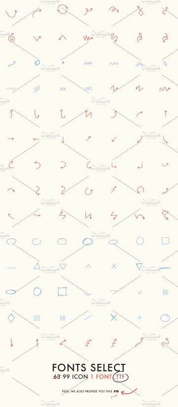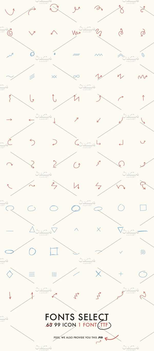 图穷联素材库 » 高质量手绘箭头符号字体 Font Select ICON