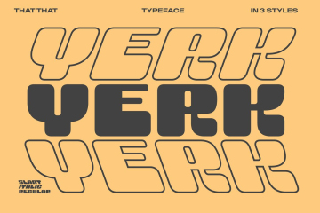 Yerk 是另一种受 Y2K 启发的现代字体。这种复古字体有 3 种样式,常规斜体和倾斜。其大胆的重量、带有微圆角的方形字母使其非常适合为您的设计增添巨大的冲击力和一点个性。它非常适合徽标、品牌、杂志、Instagram 以及您正在寻找的任何项目。