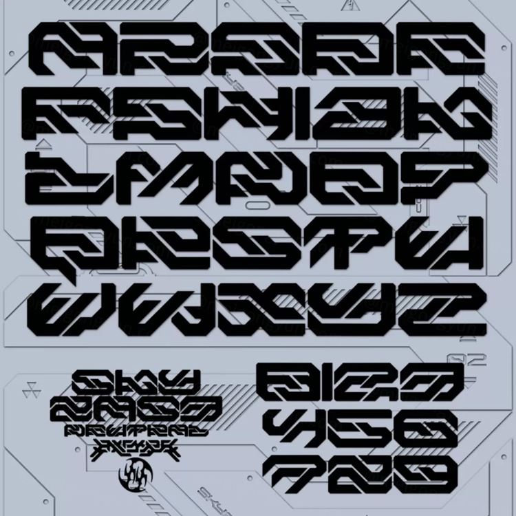 潮流复古未来派赛博朋克新工业风英文装饰字体 3XPYRE -