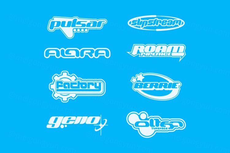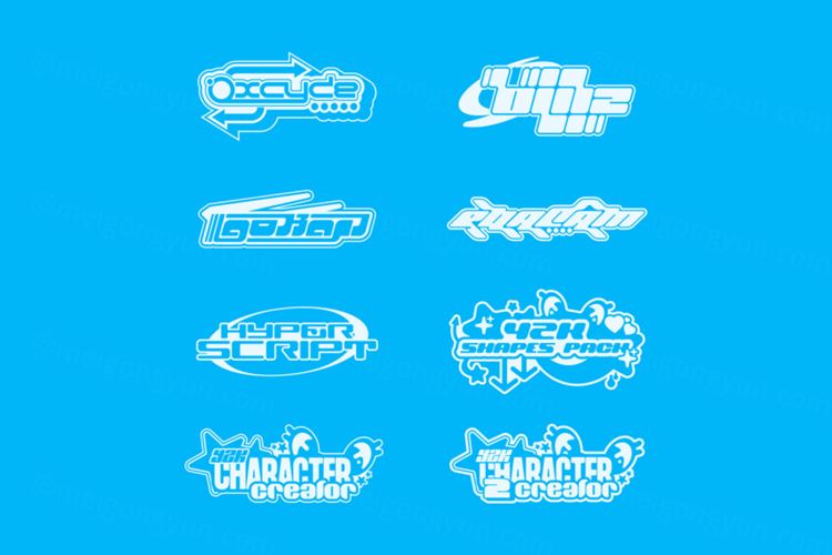 图穷联素材库 » 潮流Y2K千禧年复古可爱卡通徽标英文装饰字体超级合集包 Y2