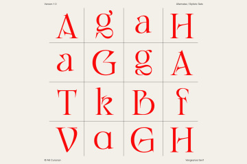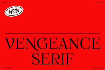 Vengeance 于 2023 年发布,是一种衬线显示字体,其特点是鲜明的衬线、终端和喙与精致的特征形成鲜明对比,赋予其自信、有说服力的个性。
