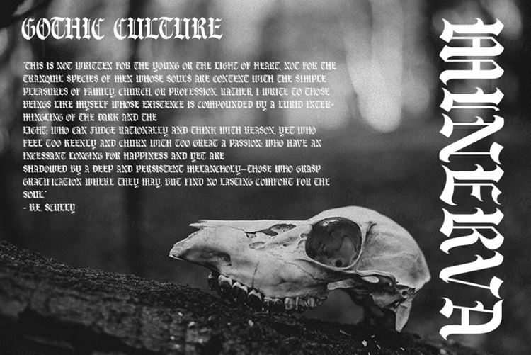 图穷联素材库 » 地下暗黑纹身嘻哈说唱潮牌服饰英文哥特字体 Minerva |