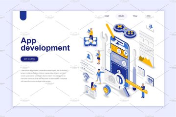 现代网站着陆页等距概念插图集 Landing Page Templates