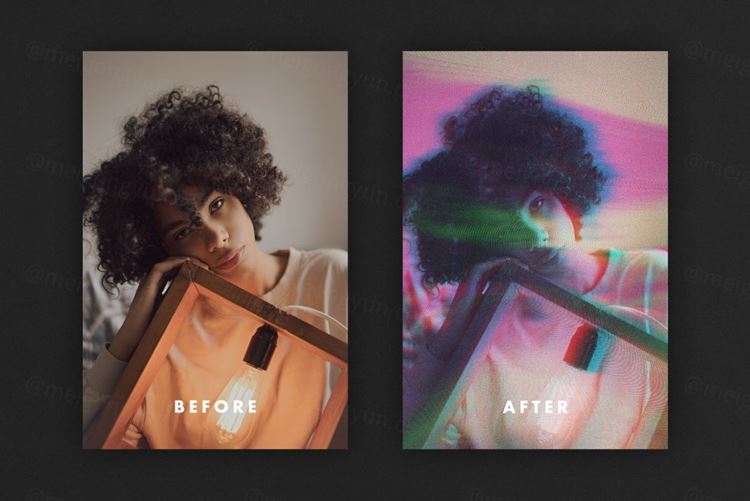 图穷联素材库 » 潮流故障艺术迷幻海报PSD滤镜模板 Toxic Glitch