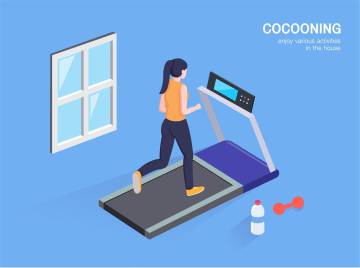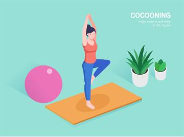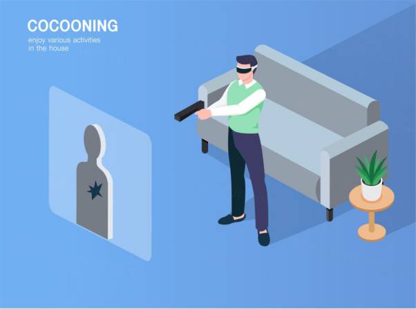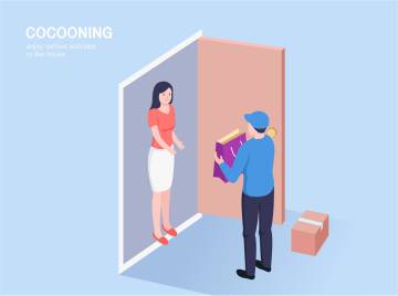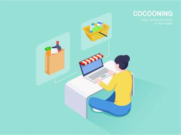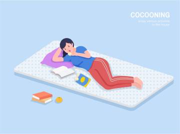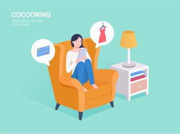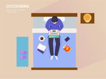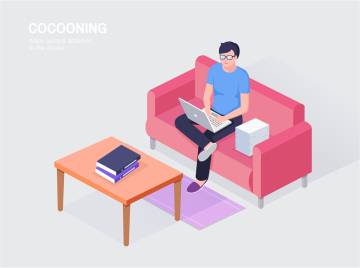 桌子书本沙发笔记本电脑居家男女科技插图插画cocooning