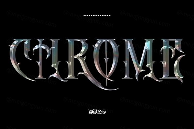 图穷联素材库 » 复古镀铬金属立体字文本样式PSD模板 Chrome Meta