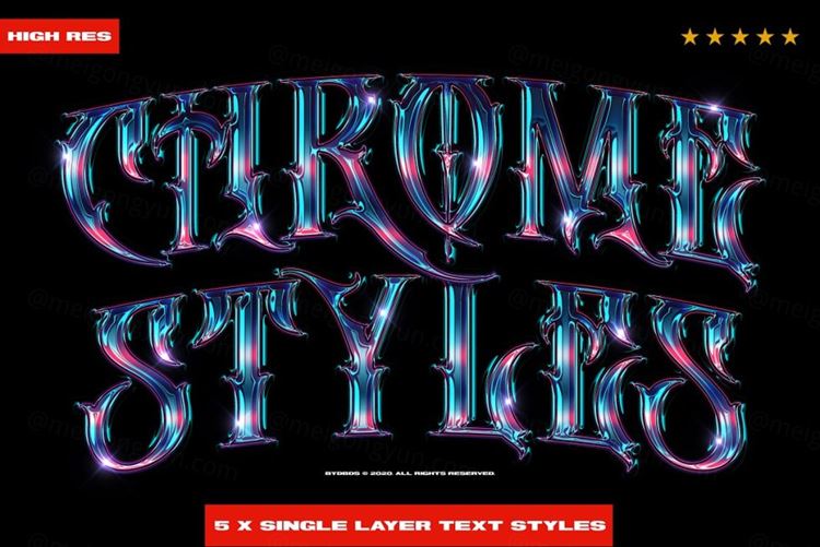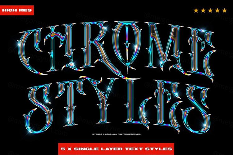 复古镀铬金属立体字文本样式PSD模板 Chrome Text