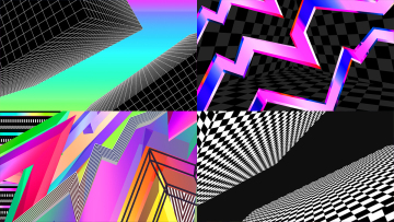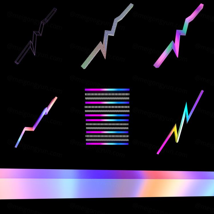 图穷联素材库 » 新复古蒸汽波未来派3D渐变条纹彩虹水晶棕榈树场景装饰元素合集