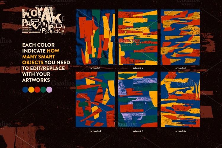 每个智能对象,你可以用任何东西填充它,从排版作品,或者只是抽象艺术。您无需修改即可轻松获得撕裂的纹理,只需调整打开/关闭其中的纹理层。Koyak 也适用于任何一种颜色,黑色和白色,五颜六色的也可以。在模板内撕开的纸张使颜色和艺术品的动态融合成一件艺术品。
