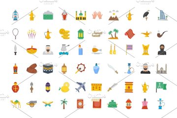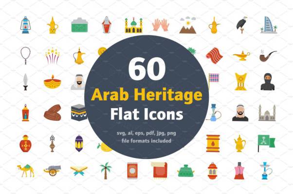 图穷联素材库 » 扁平化阿拉伯矢量图标 60 Flat Arab Heritage Vector