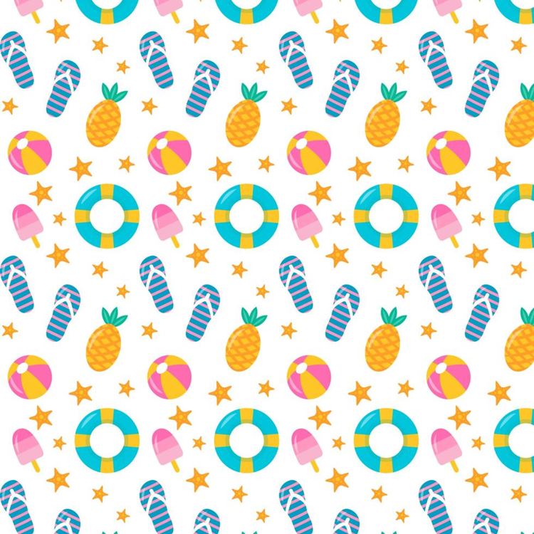 图穷联素材库 » 夏季暑假夏天拖鞋游泳圈菠萝夏日装饰无缝拼接图案素材 Summ