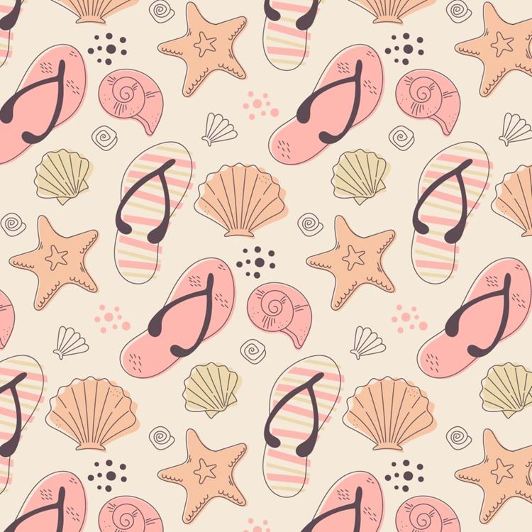 图穷联素材库 » 夏季暑假夏天拖鞋海星海贝夏日装饰无缝拼接图案素材 Summe