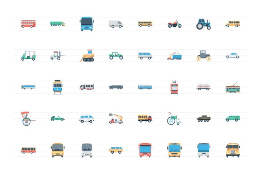 图穷联素材库 » 扁平化交通图标素材 112 Flat Transports Icons