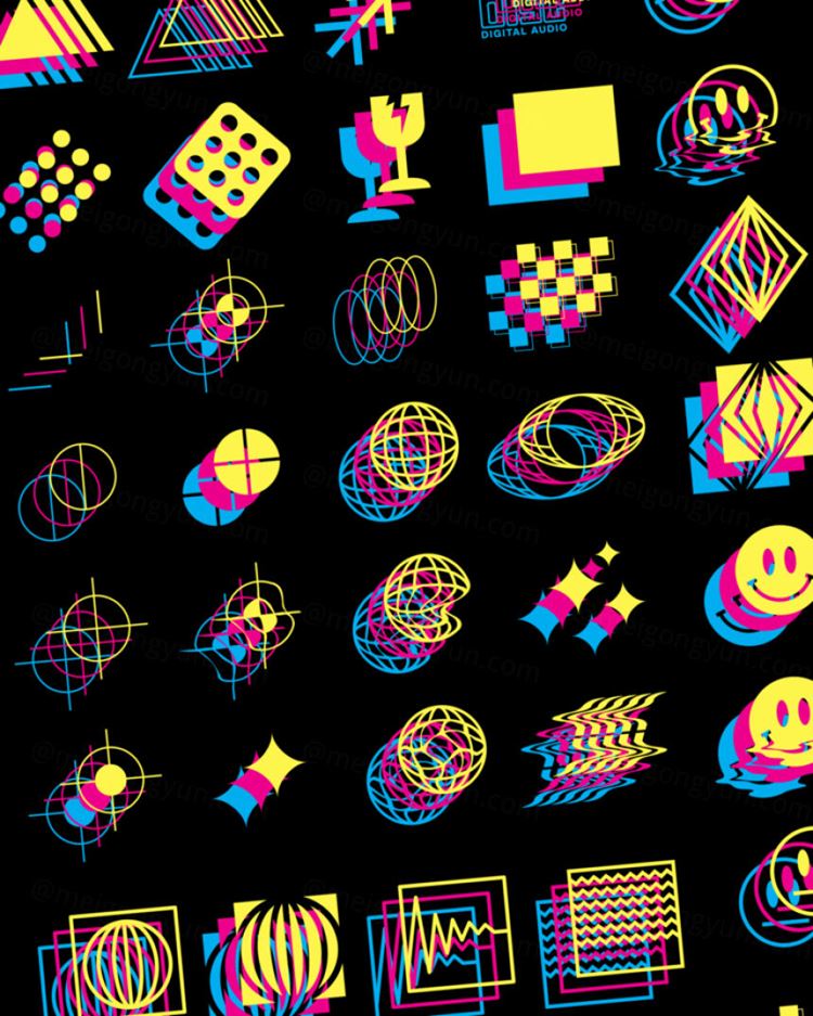图穷联素材库 » 潮流酸性艺术扭曲变形矢量图标素材合辑 Bright Coal