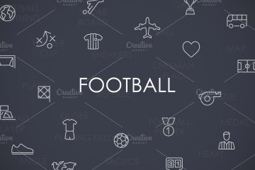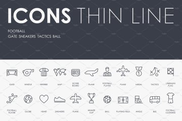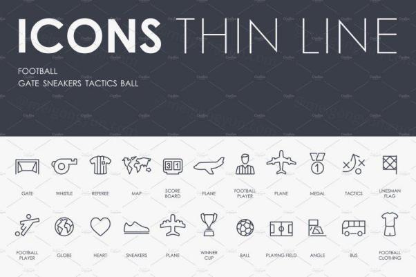 图穷联素材库 » 足球矢量图标素材 Football thinline icons