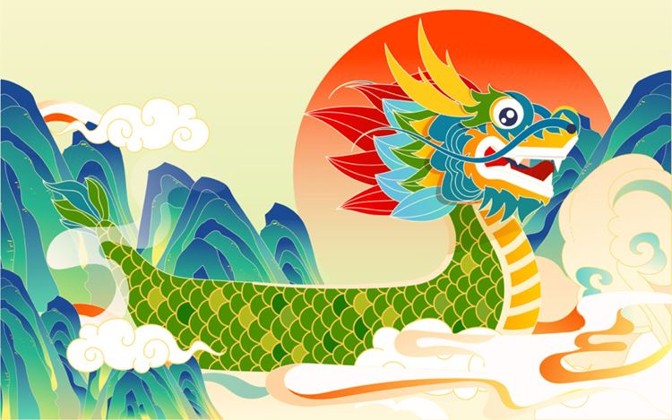 图穷联素材库 » 端午节卡通龙舟祥云浪花场景EPS矢量插画素材
