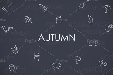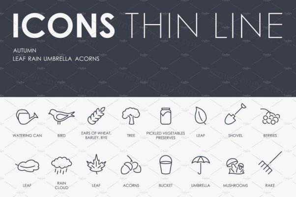 图穷联素材库 » 秋季矢量图标素材 Autumn thinline icons