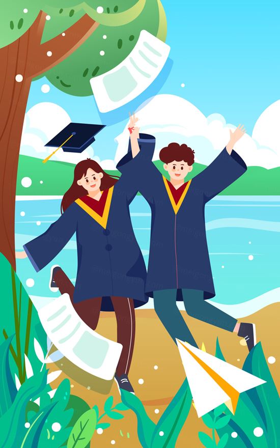 图穷联素材库 » 毕业季学生穿着学士服欢呼跳跃场景EPS矢量插画素材