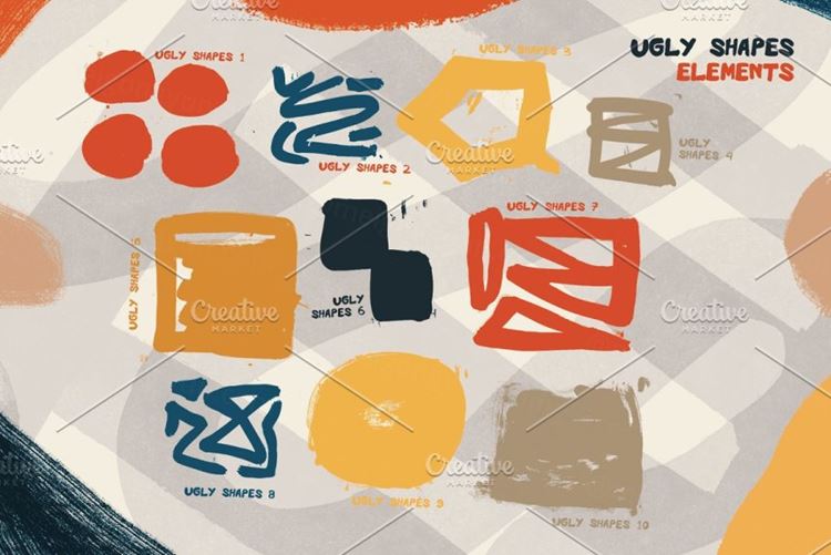 孟菲斯波尔卡圆点手绘涂鸦笔触装饰形状素材合辑 Ugly Sh