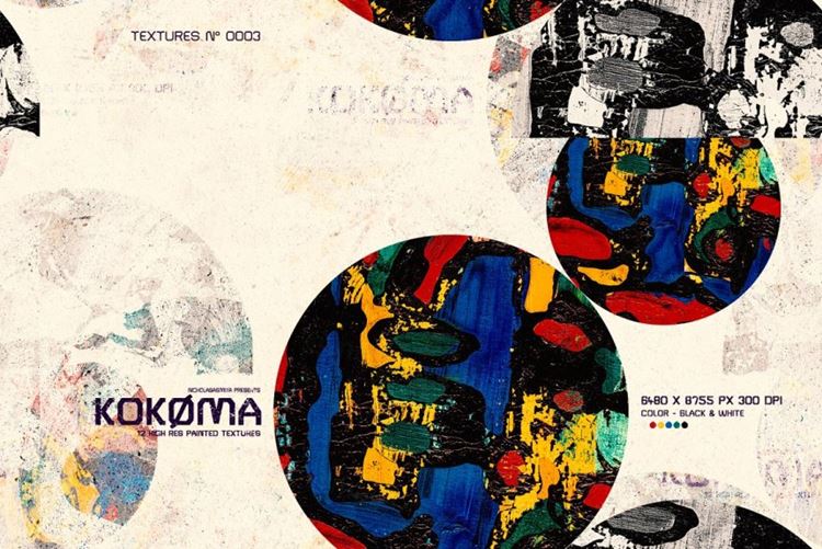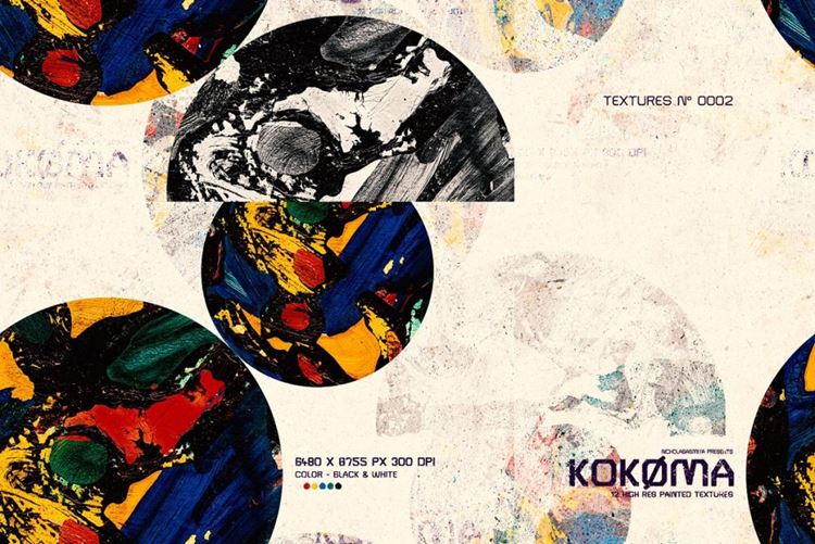 Kokoma:12 种高分辨率彩绘纹理 12 种高分辨率纹理基于纸上手工绘制并进行数字扫描,让您可以灵活地使用任何类型的项目。在纹理内部还有一些来自油漆的自然裂纹纹理。凭借 6480x8755 像素的大分辨率,您可以在大型项目(如墙纸或广告牌项目)中打印它。提供 2 个版本的彩色和黑白版本。