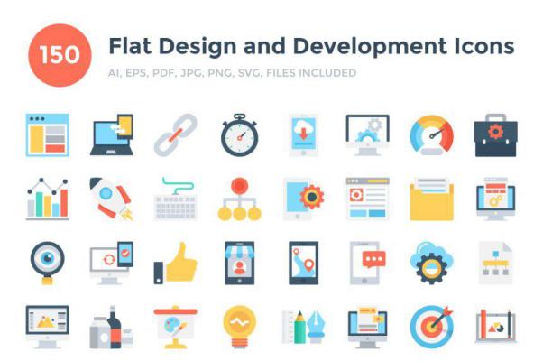 图穷联素材库 » 开发设计矢量图标 150 Flat Design amp;amp; Develo